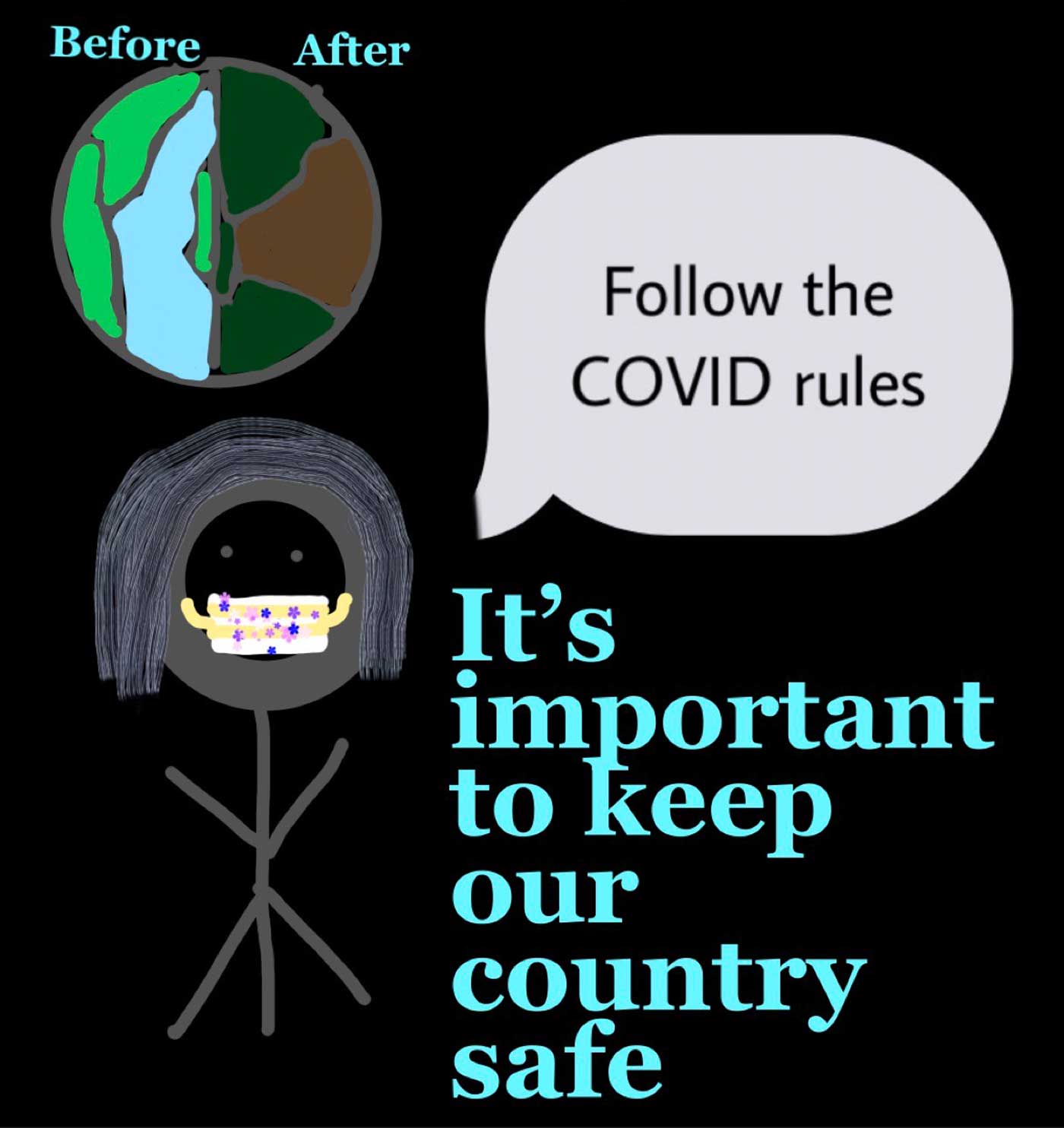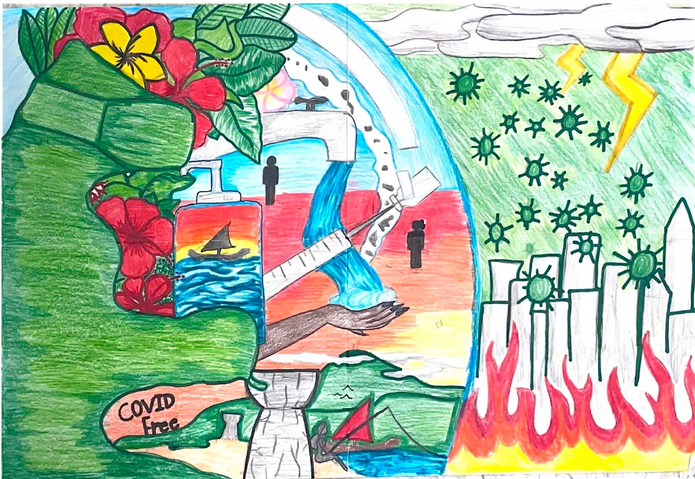 “This year I judged the 3D and digital art contest. I really enjoyed looking at the different interpretations that our community members had on this pandemic and how they turned them into art pieces. With all the circumstances that COVID-19 brought to our islands, these artists found great and beautiful ways to turn a negative situation into something more positive. So each of these artworks was a true representation of the hope and the resiliency in our people, especially in our youth which filled me with lots of joy as a judge.” – Ria Terlaje
