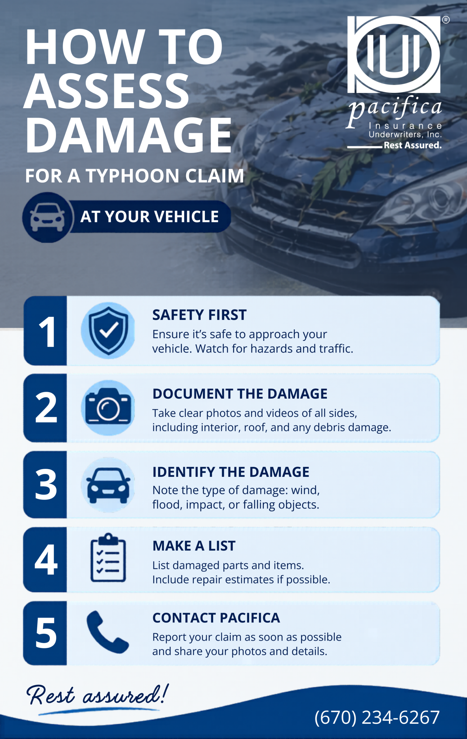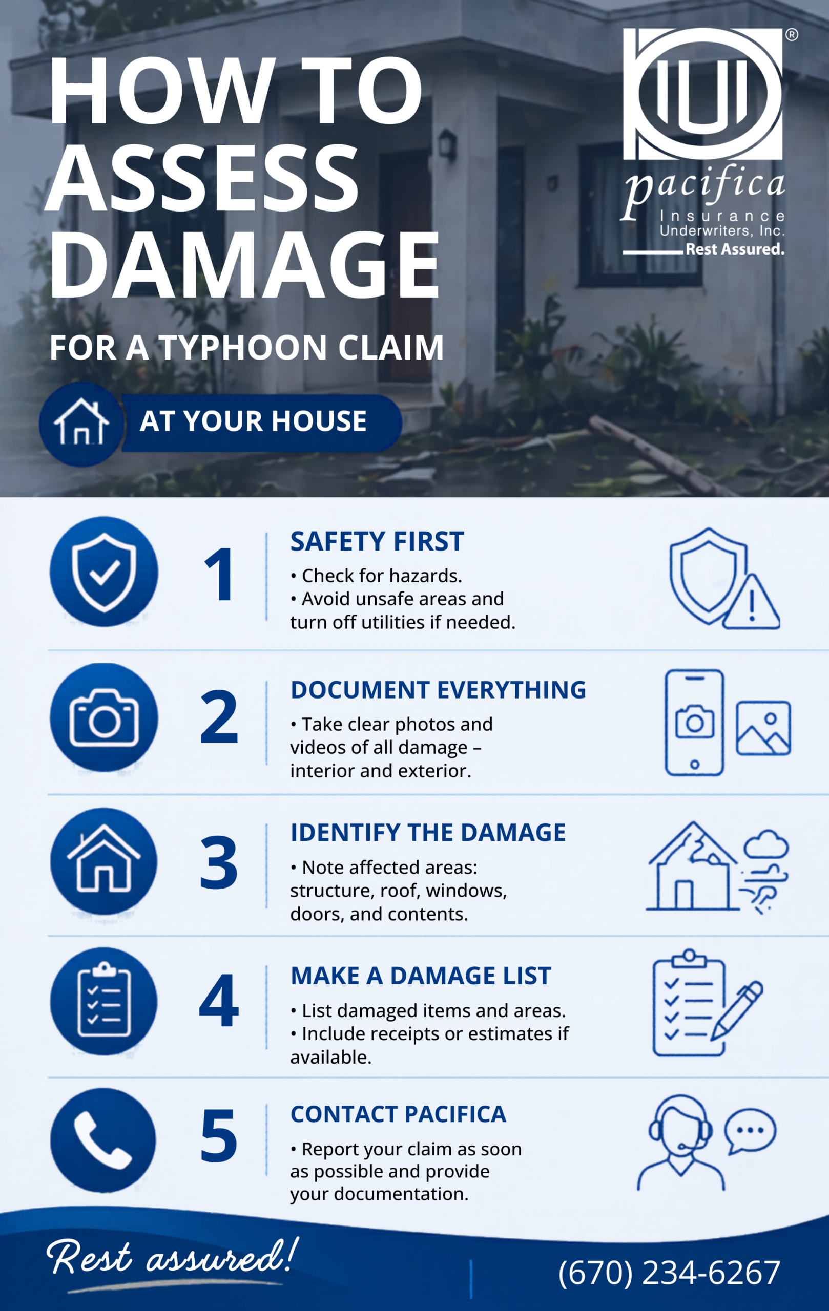 For auto and all other claims, please contact our Claims Department at (670) 234-6267 or visit us during normal business hours between 8:00 am to 5:00 pm, Monday to Friday
